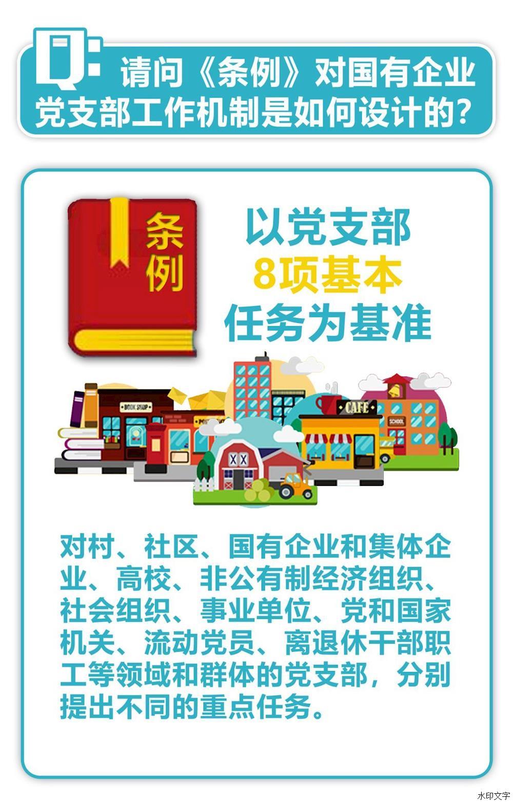 ?。ㄈ﹪?guó)有企業(yè)和集體企業(yè)中的黨支部,保證監(jiān)督黨和國(guó)家方針政策的貫徹執(zhí)行,圍繞企業(yè)生產(chǎn)經(jīng)營(yíng)開(kāi)展工作,按規(guī)定參與企業(yè)重大問(wèn)題的決策,服務(wù)改革發(fā)展、凝聚職工群眾、建設(shè)企業(yè)文化,創(chuàng)造一流業(yè)績(jī)。