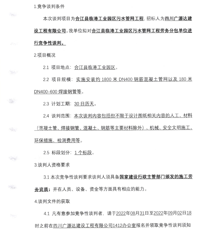 合江縣臨港工業(yè)園區(qū)污水管網(wǎng)工程勞務(wù)分包