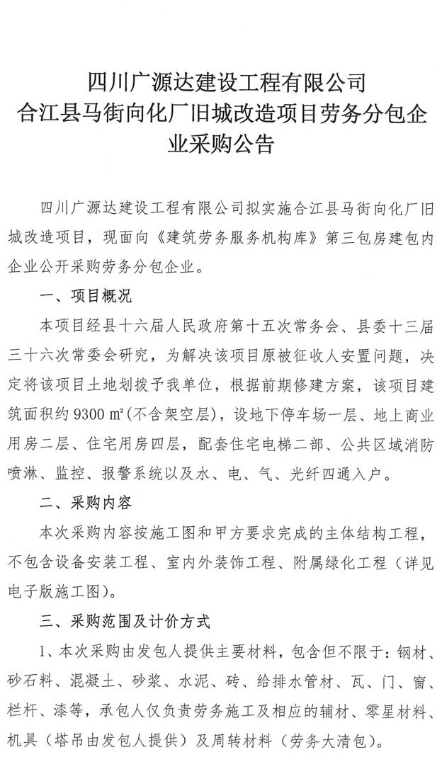 四川廣源達建設(shè)工程有限公司 合江縣馬街向化廠舊城改造項目勞務分包企業(yè)采購公告.doc